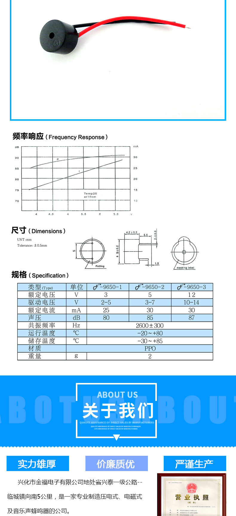 無(wú)源 9650-12V 引線 頂發(fā)音